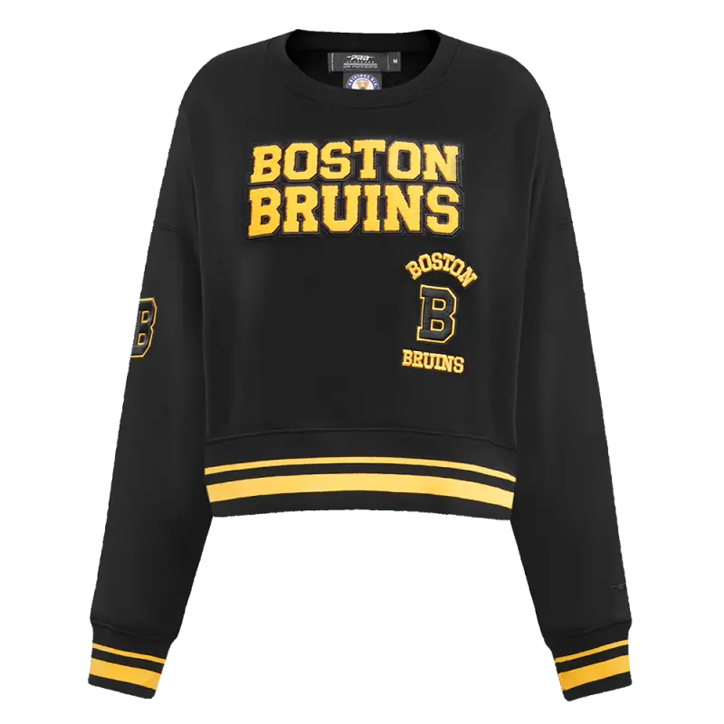 NHL BOSTON BRUINS RETRO CLASSIC WOMEN’S RIB CROPPED PULLOVER HOODIE (BLACK\/YELLOW)
