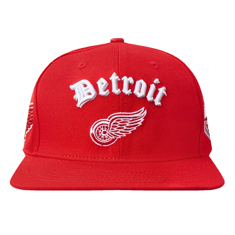 NHL DETROIT RED WINGS OLD ENGLISH UNISEX 6 PANEL SNAPBACK HAT (RED)
