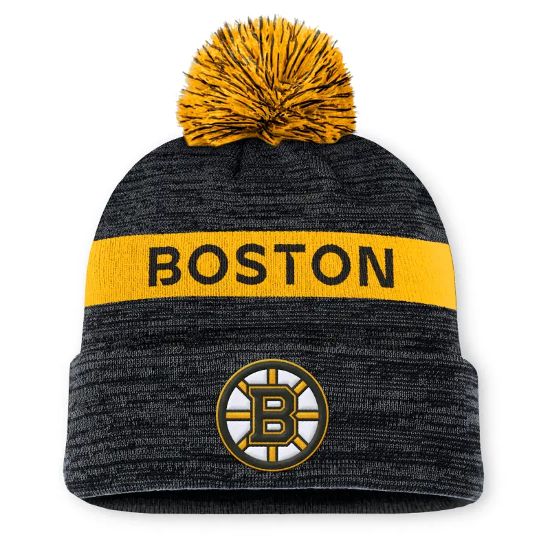 Boston Bruins Authentic Pro Rink Beanie Cuff With POM