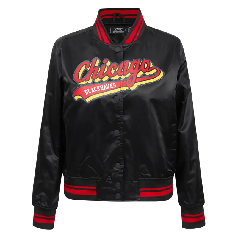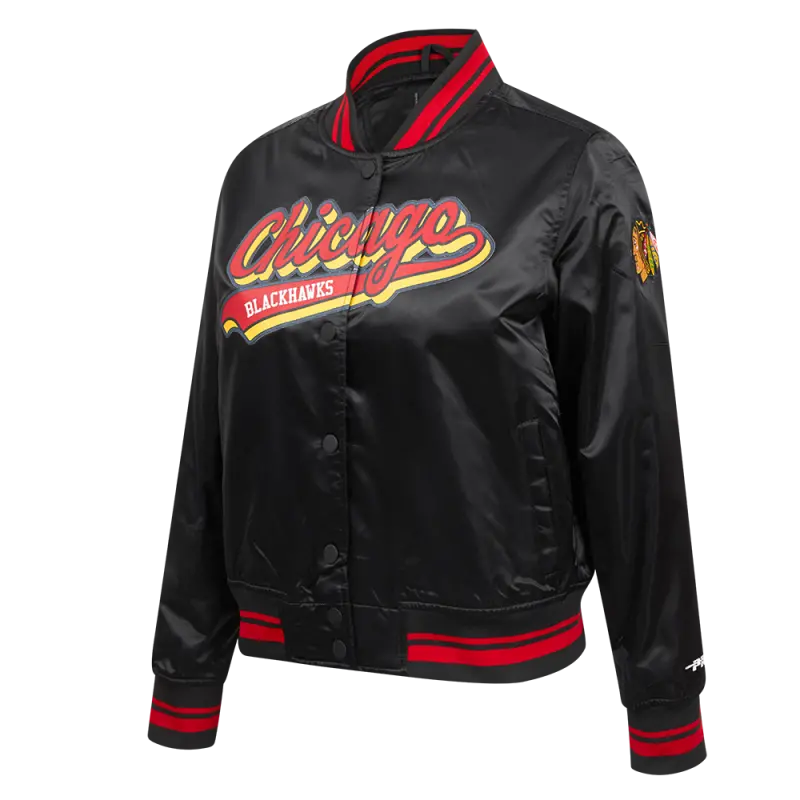 NHL CHICAGO BLACKHAWKS RETRO CLASSIC RIB SATIN JACKET (BLACK\/RED\/BLACK)