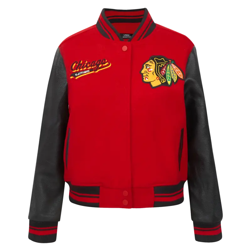 NHL CHICAGO BLACKHAWKS CLASSIC MEN’S WOOL VARSITY JACKET (BLACK\/RED)