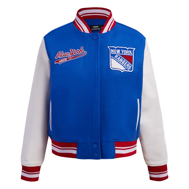 NHL NEW YORK RANGERS CLASSIC WOMEN’S VARSITY JACKET (ROYAL BLUE\/WHITE)
