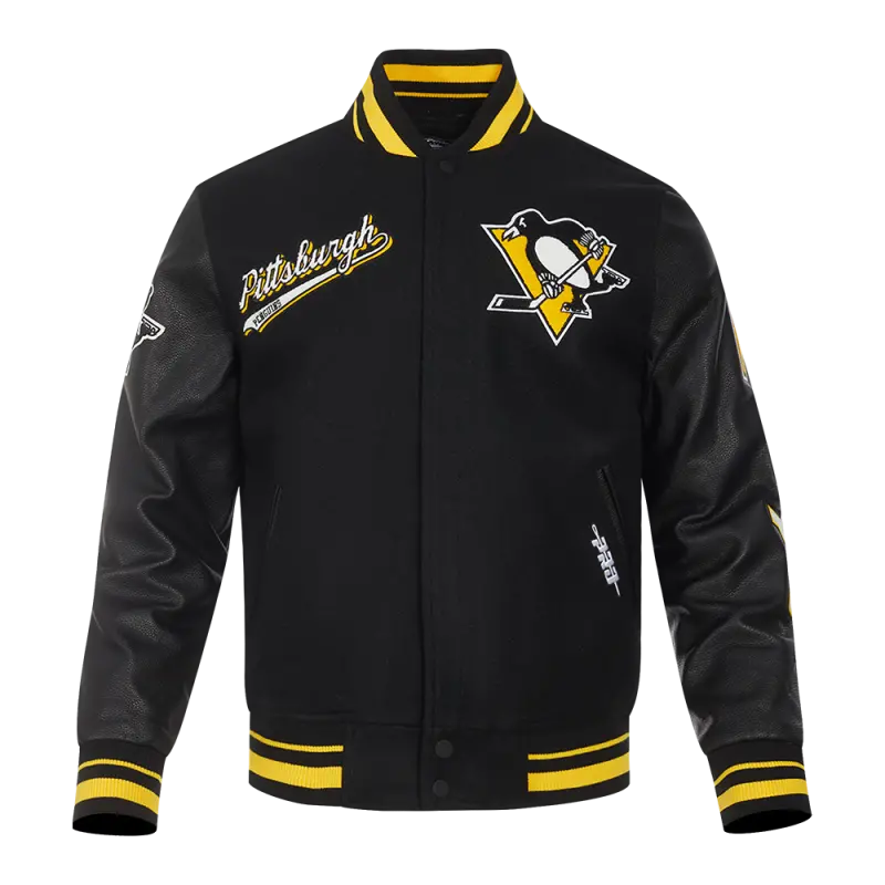 NHL PITTSBURGH PENGUINS CLASSIC CHENILLE MEN’S TRACK JACKET (BLACK\/YELLOW)