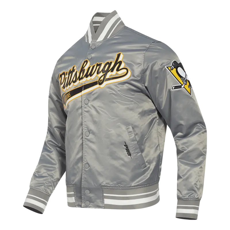 NHL PITTSBURGH PENGUINS SCRIPT TAIL MEN’S SATIN JACKET (GRAY)