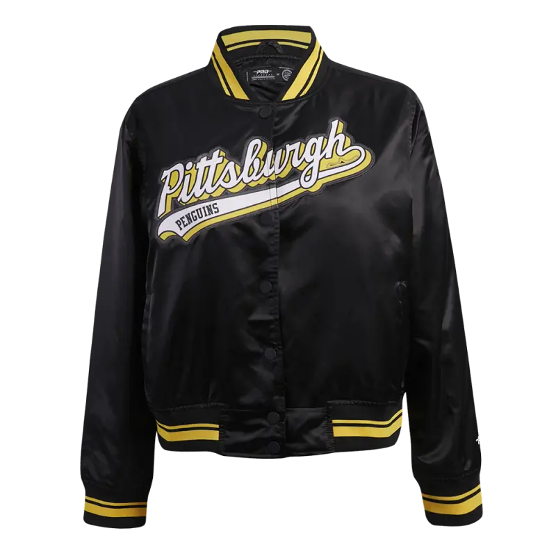 NHL PITTSBURGH PENGUINS CLASSIC WOMEN’S SATIN JACKET (BLACK)