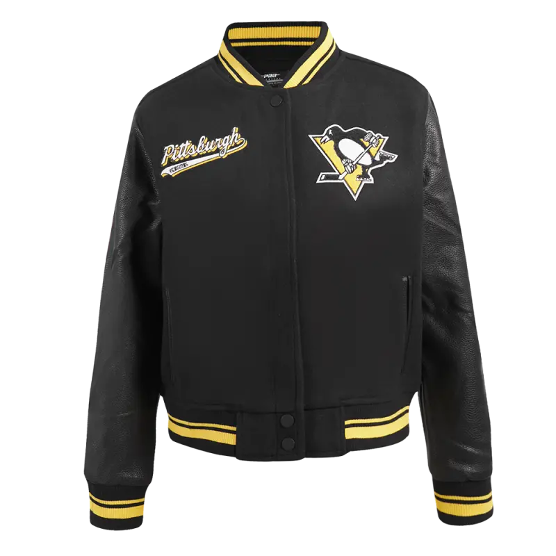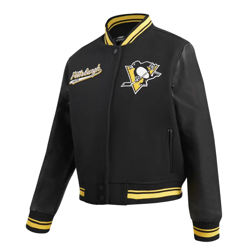 NHL PITTSBURGH PENGUINS CLASSIC WOMEN’S VARSITY JACKET (BLACK\/WHITE)