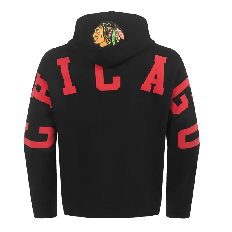 NHL CHICAGO BLACKHAWKS SCRIPT TAIL MEN’S RIB FLEECE PULLOVER HOODIE (BLACK\/RED\/BLACK)