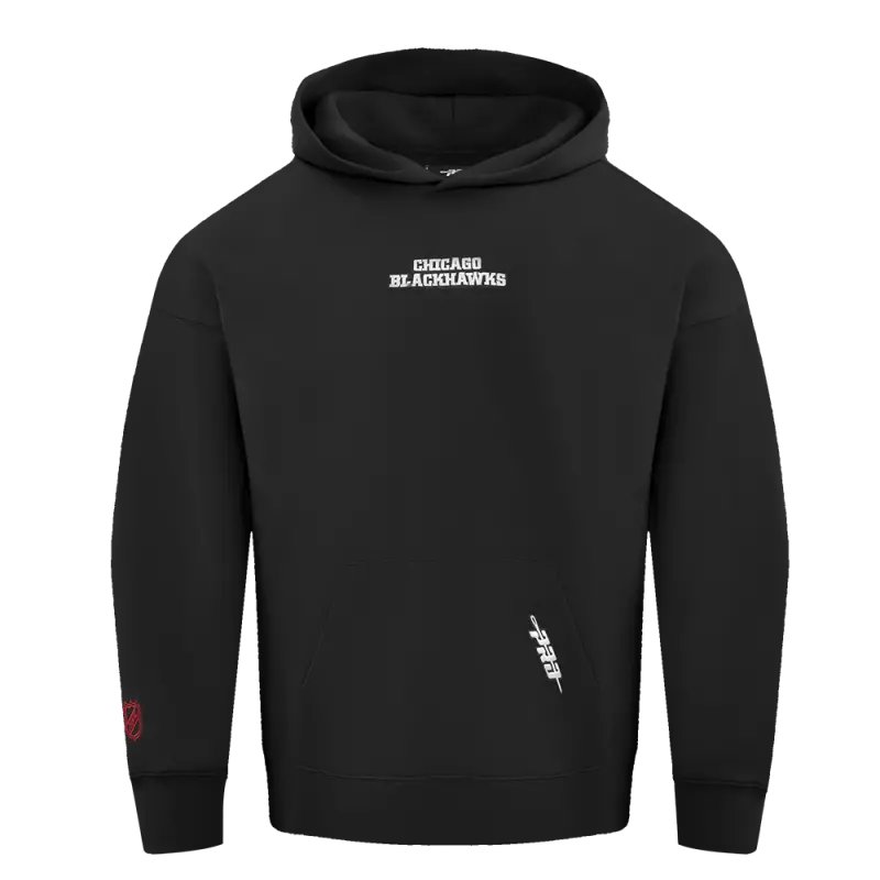 NHL CHICAGO BLACKHAWKS WINGSPAN MEN’S DROP SHOULDER FLEECE PULLOVER HOODIE (BLACK)