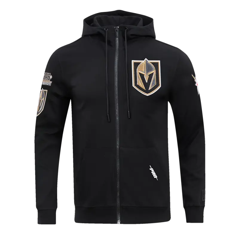 NHL VEGAS GOLDEN KNIGHTS CLASSIC CHENILLE MEN’S FULL ZIP PULLOVER HOODIE (BLACK)