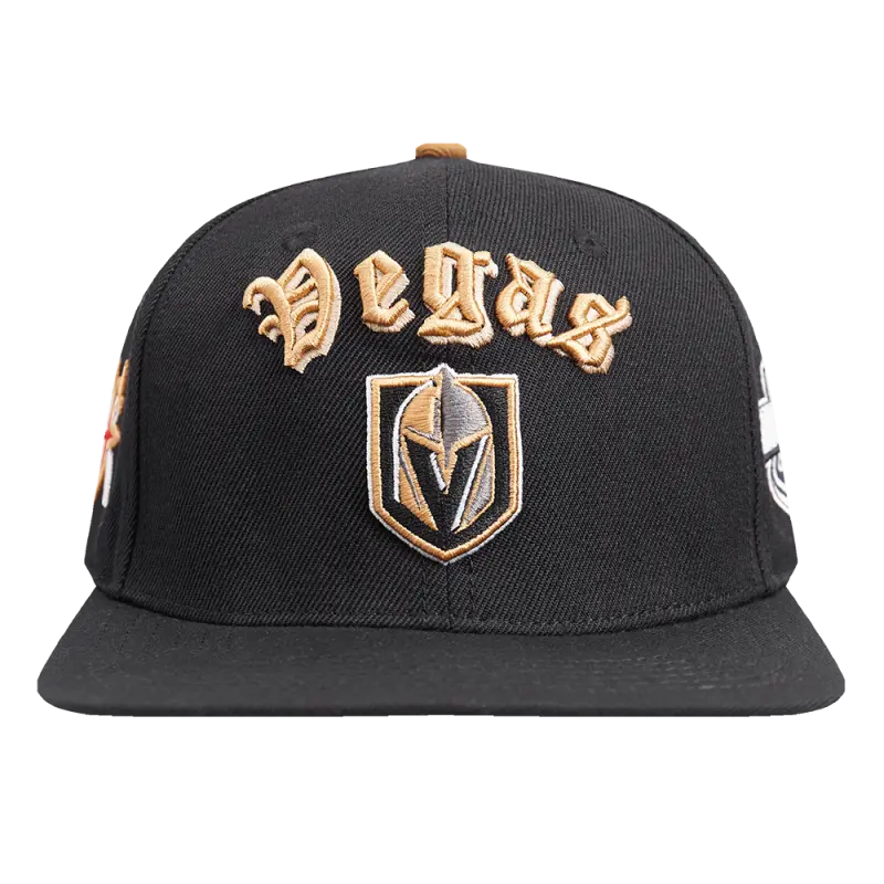 NHL VEGAS GOLDEN KNIGHTS OLD ENGLISH UNISEX 6 PANEL SNAPBACK HAT (BLACK)
