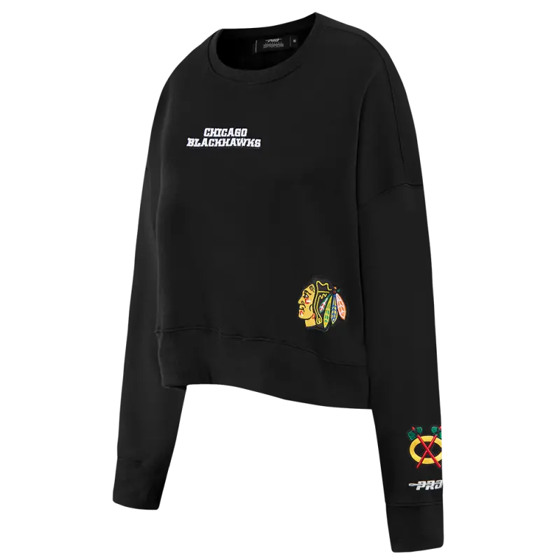 NHL CHICAGO BLACKHAWKS WINGSPAN WOMEN’S FLC CREWNECK (BLACK)