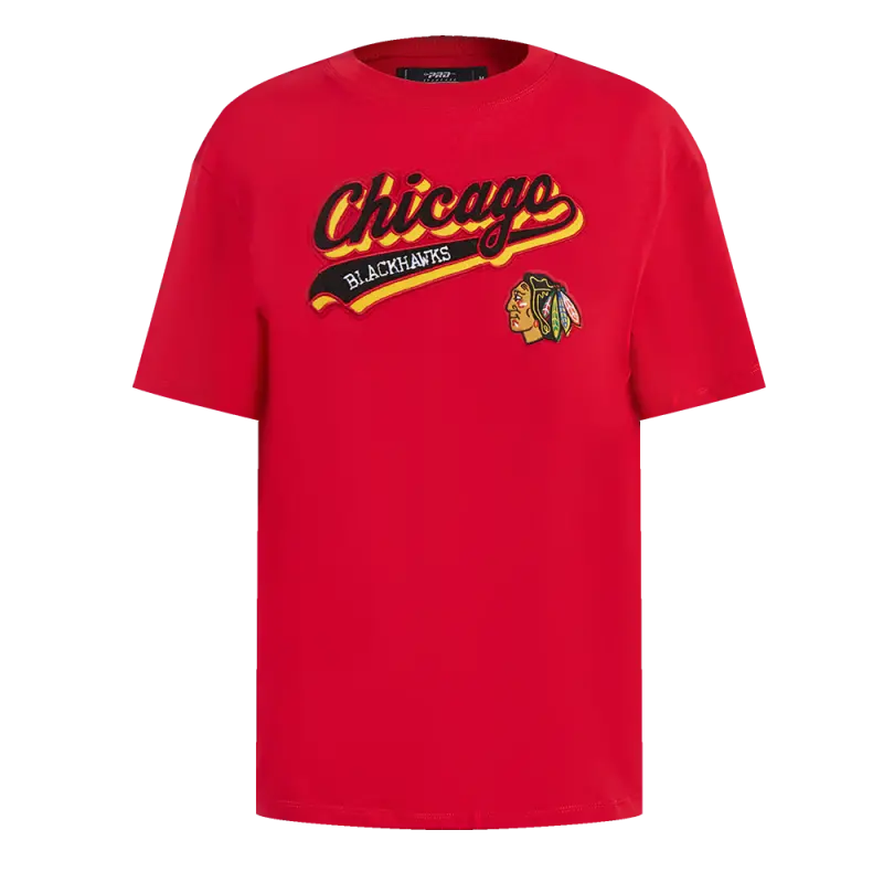Home / Shop / NHL CHICAGO BLACKHAWKS SCRIPT TAIL WOMEN’S BOYFRIEND TEE (RED)