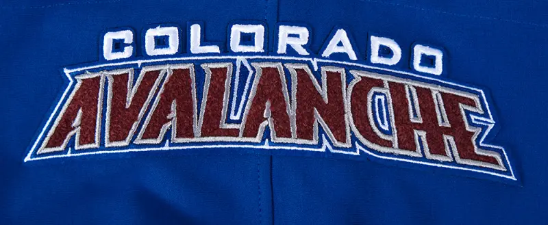 NHL COLORADO AVALANCHE CLASSIC CHENILLE MEN’S DK FULL ZIP PULLOVER HOODIE (DODGER BLUE)