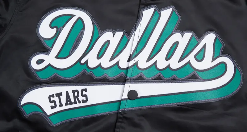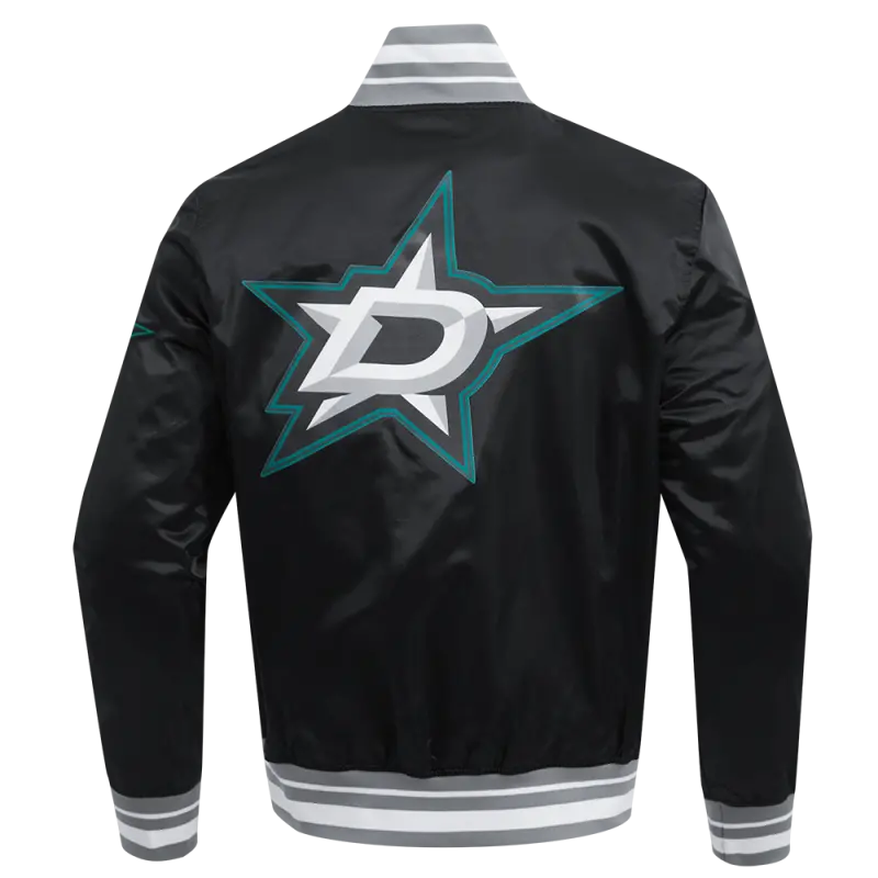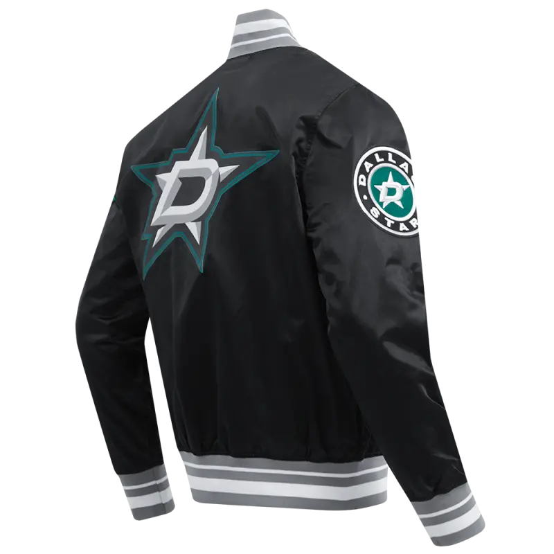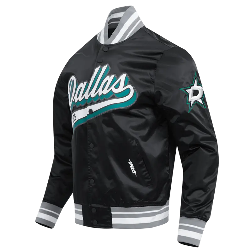NHL DALLAS STARS SCRIPT TAIL MEN’S SATIN JACKET (BLACK\/GRAY)