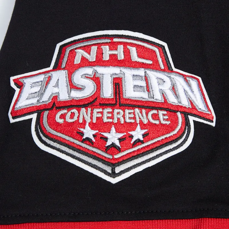NHL DETROIT RED WINGS CLASSIC CHENILLE MEN’S DOUBLE KNIT SHORT SLEEVE PULLOVER HOODIE (BLACK\/RED)