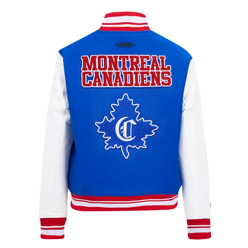NHL MONTREAL CANADIENS RETRO CLASSIC WOMEN’S RIB WOOL VARSITY JACKET (ROYAL BLUE\/RED)