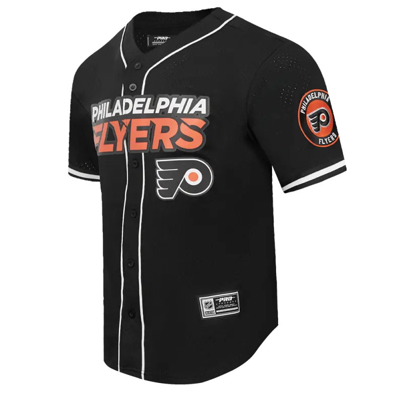 NHL PHILADELPHIA FLYERS CLASSIC MEN’S MESH BUTTON DOWN SHIRT (BLACK)
