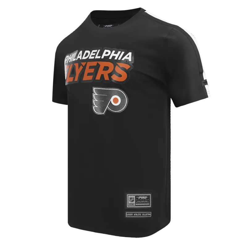 NHL PHILADELPHIA FLYERS CLASSIC MEN’S MESH SINGLE JERSEY STRIPED TEE (BLACK)
