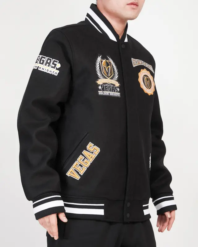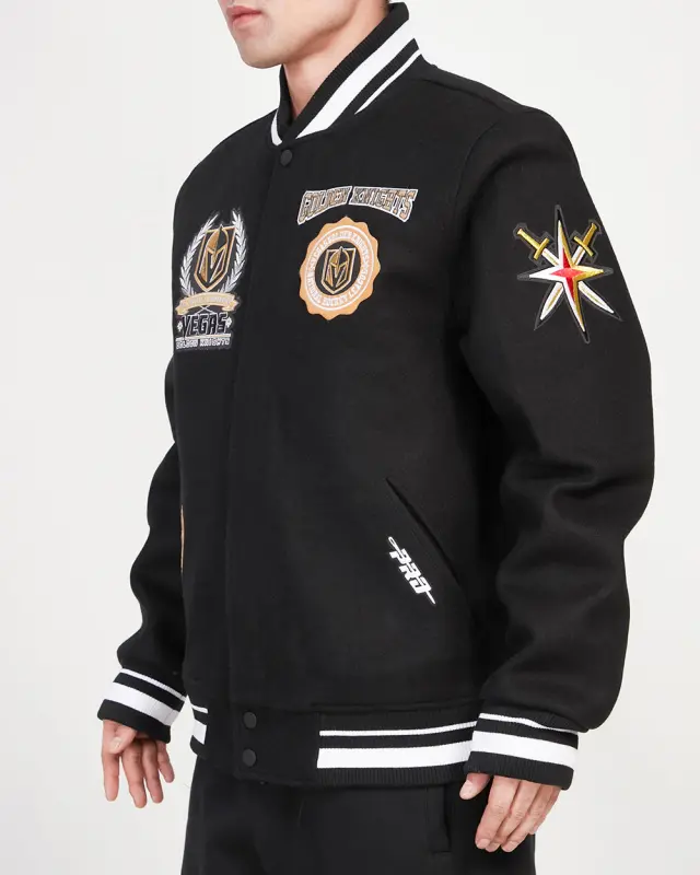 NHL VEGAS GOLDEN KNIGHTS CREST EMBLEM MEN’S WOOL VARSITY JACKET (BLACK)